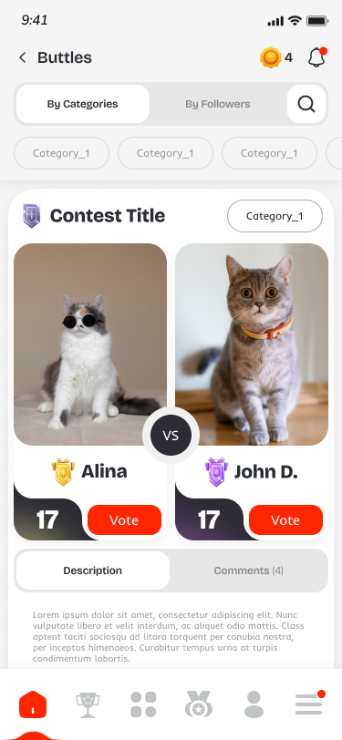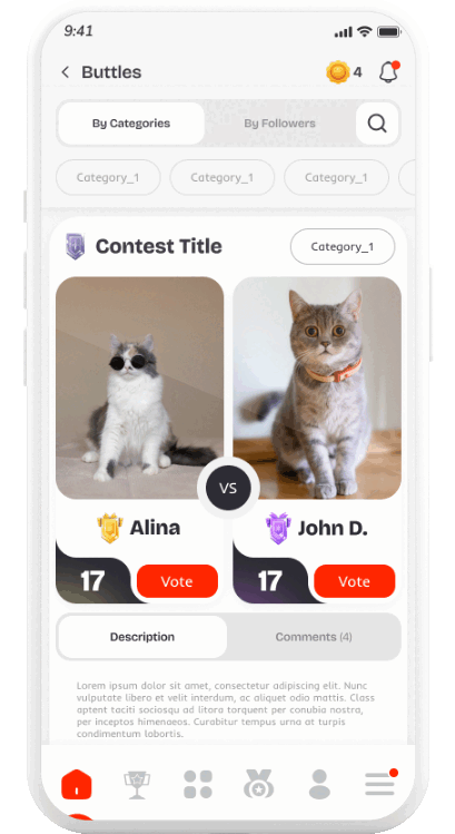 Engage in 1v1 photo battles, where votes determine who advances.
