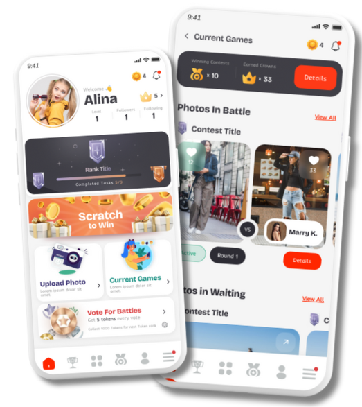 Collect tokens, badges, and crowns by participating and winning in contests.
